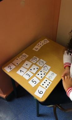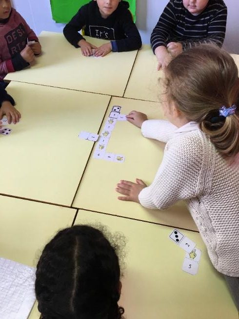 Durant cette période,nous avons travaillé les différentes représentations des nombres sous la forme de tri et d’association de cartes mais aussi grâce à un jeu de dominos dont nous avons explicité les règles.