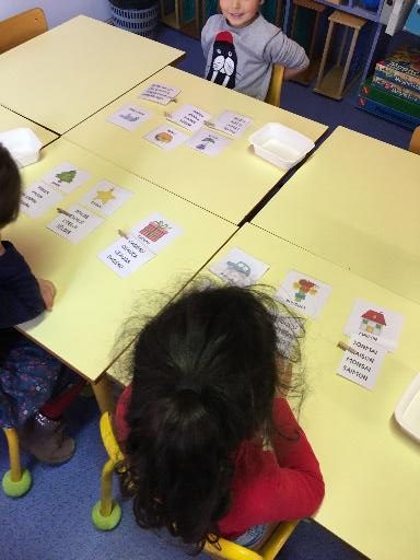 Si durant la période précédente, les élèves avaient appris à identifier la provenance d’un son et à reproduire des rythmes,cette fois-ci l’importance a été donnée à l’apprentissage de l’articulation des mots et au repérage de sons proches.