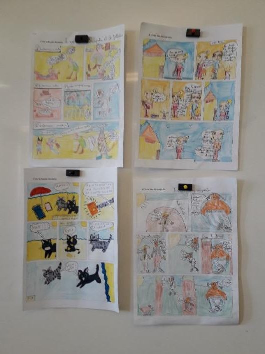 Après avoir découvert l’univers des personnages de la bande dessinée, nous avons pu réinvestir nos connaissances et rédiger des planches de bandes dessinées, écrire nos récits sous forme de bande dessinée et décrire les héros de nos lectures.