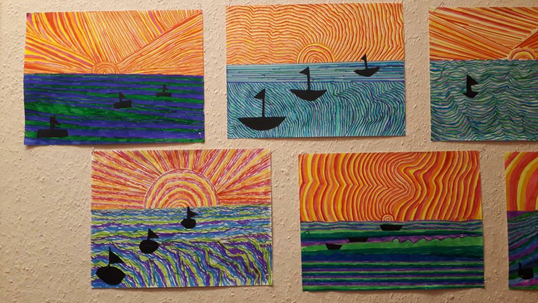 A notre tour , nous avons réalisé un coucher de soleil en utilisant les couleurs chaudes et froides.