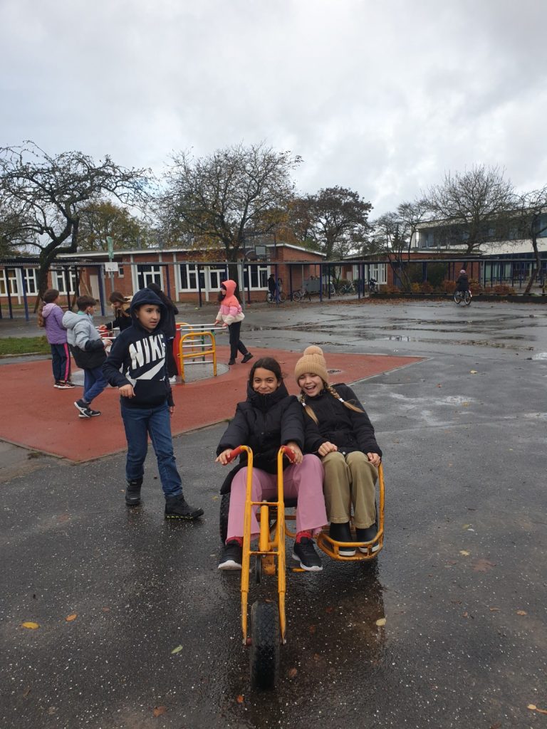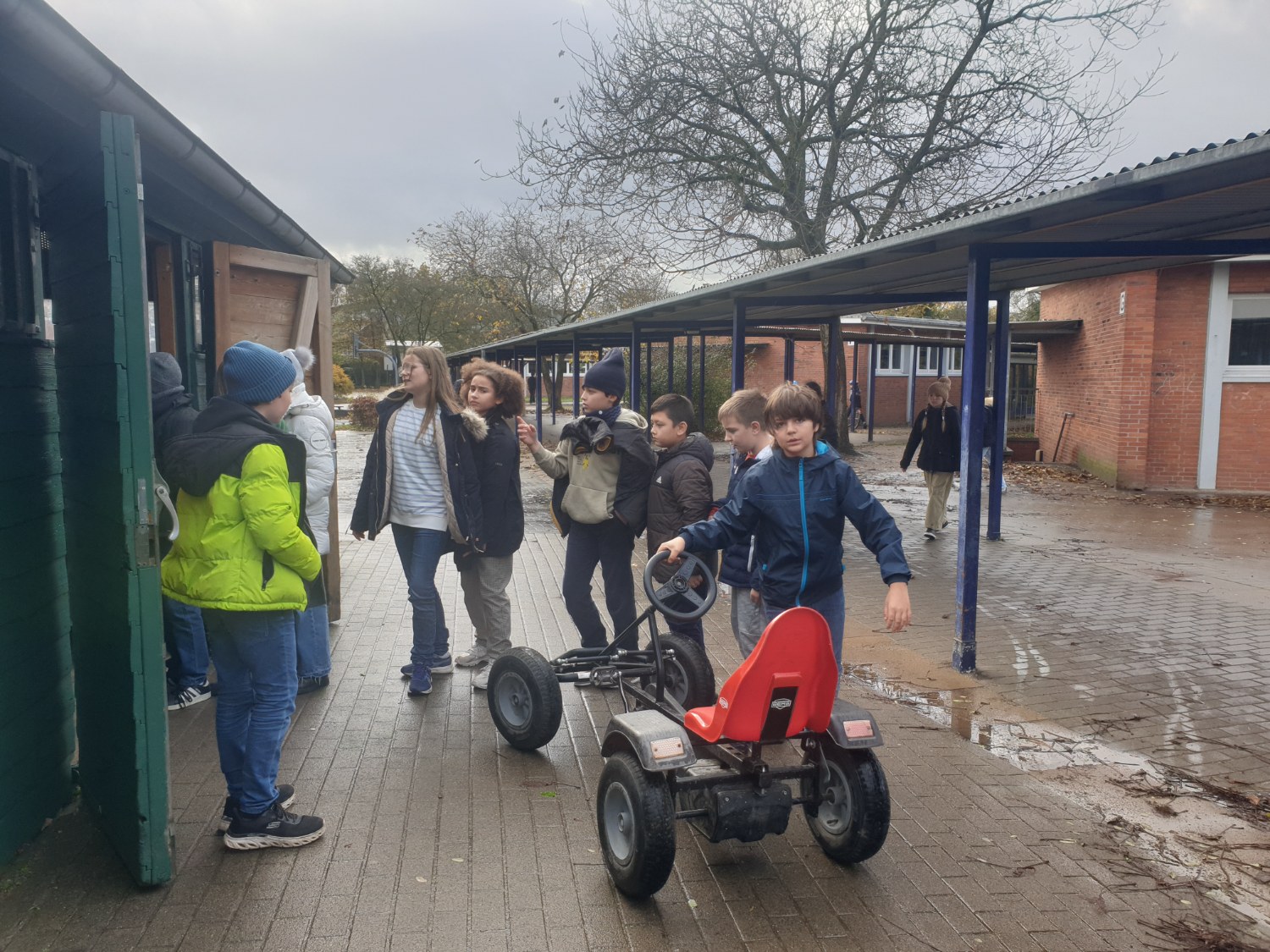 Les élèves allemands, aidés de leur enseignante de français, ont préparé quelques jeux ainsi qu’une collation composée uniquement de produits locaux. Chacun se présente, et l’heure de la récréation a déjà sonné ! Mini-karts à pédales, terrains de football, tourniquet, roue… Les activités ne manquent pas, pour le plus grand bonheur des élèves français.