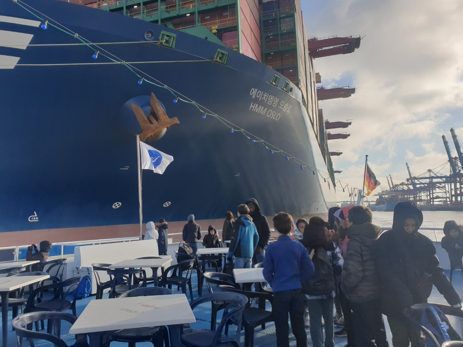 Le mercredi, rendez-vous est donné à l’embarcadère situé en face de l’auberge pour retrouver les camarades allemands et embarquer pour une croisière d’une heure sur l’Elbe. Les enfants découvrent le troisième port d’Europe et sont impressionnés par les immenses porte-containers. La croisière se poursuit ensuite jusqu’à la philharmonie, prochaine étape de leur journée.
