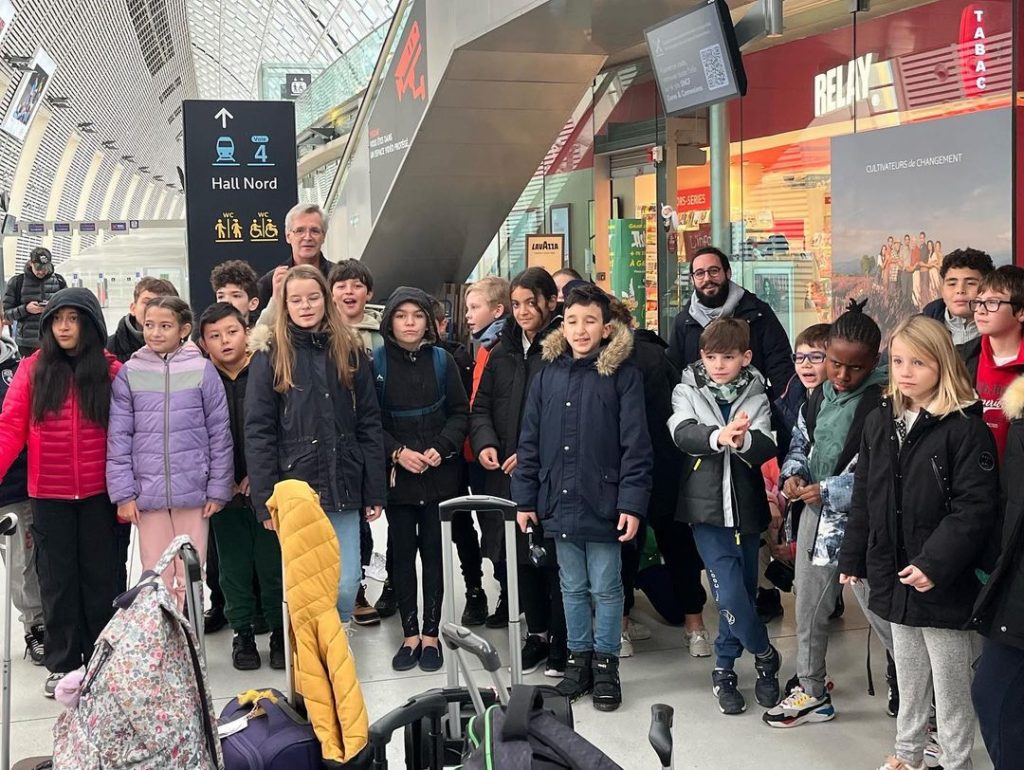 Lundi 18 novembre 2023, 7h45, gare d’Avignon TGV. Au milieu des voyageurs pressés, un groupe se forme peu à peu. Une douce agitation émane du hall blanc. Une vingtaine d’élèves de CM2 de l’école Saint-Vincent-de-Paul, à Arles, se regroupe.