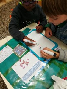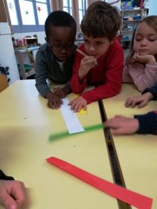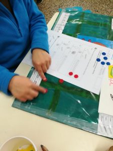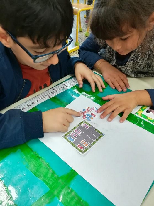 A l’aide du matériel, le parking, les voitures, nous avons pu mimer les différentes situations proposées. Trouver le nombre de voitures restantes dans le parking après la sortie ou la rentrée de quelques-unes.