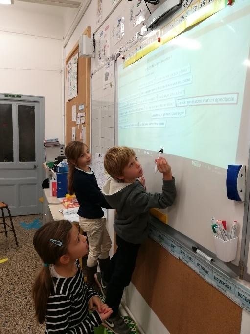 A tour de rôle nous utilisons le VPI pour nous entraîner. Nous aimons bien cela car nous apprenons tous ensemble, si on se trompe nous pouvons corriger directement avec le stylet !