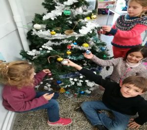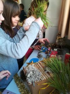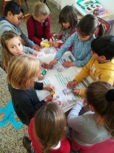 Durant le temps de l’Avent, nous avons réalisé dans la classe une crèche, moment de partage autour des santons.