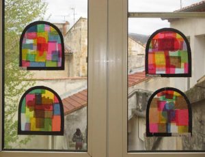 Après avoir visité l’église Saint Trophime et étudié ses vitraux, nous en avons fabriqué en atelier….